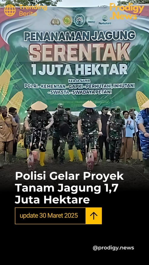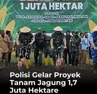 Polri telah memulai proyek pertanian jagung dengan target lahan seluas 1,7 juta hektare di seluruh Indonesia sejak akhir Januari lalu.